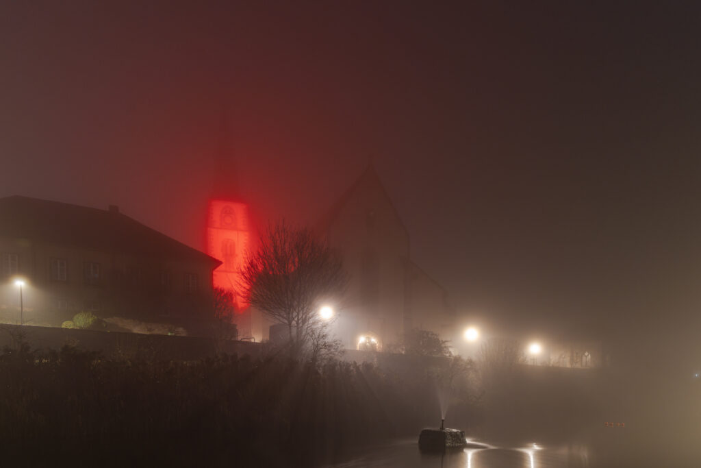 Unten an der Saale wurde der Nebel dann, wie üblich, nochmal deutlich dichter. Das war so weit nichts Ungewöhnliches. Dass man aber die Kirche kaum sehen konnte und auch das einigermaßen beleuchtete Rote Schloss gerade so gesehen hat, kommt nicht so häufig vor.