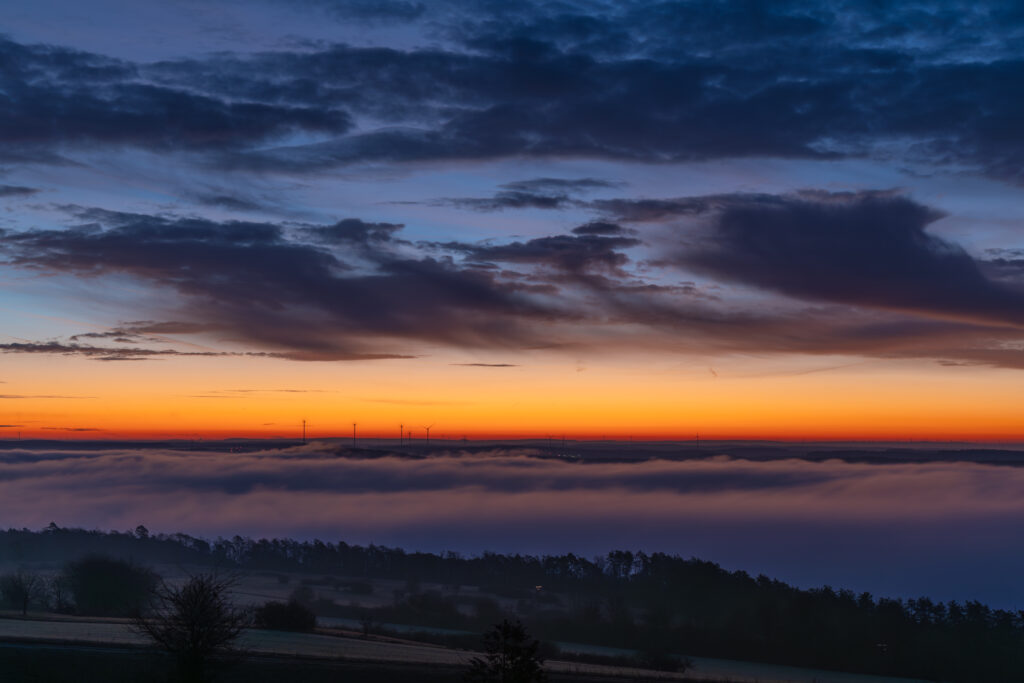 Der Himmel war nicht völlig klar, aber die richtige Dosis Wolken macht die Szenerie viel interessanter. Ich hatte noch auf rot beleuchtete Wolken gehofft, aber das hat sich nicht ergeben. Aber ich war schon sehr glücklich, dass sich der Dauer-Hochnebel endlich mal aufgelöst hatte.
