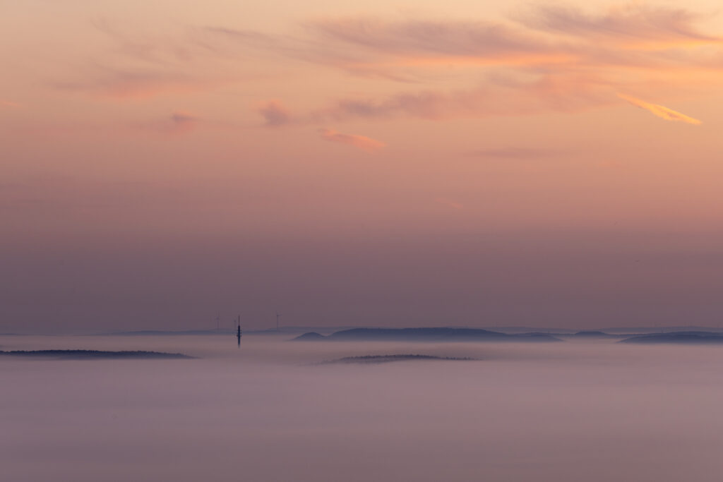 Schon am Freitag hatte ich einen ersten Versuch unternommen, um über den Nebel zu kommen, aber da bin ich am Wanderparkplatz in dichtestem Nebel wieder umgedreht. Beim 2. Anlauf am nächsten Tag konnte ich schon auf dem Weg zum Aussichtspunkt die Morgenstimmung genießen.