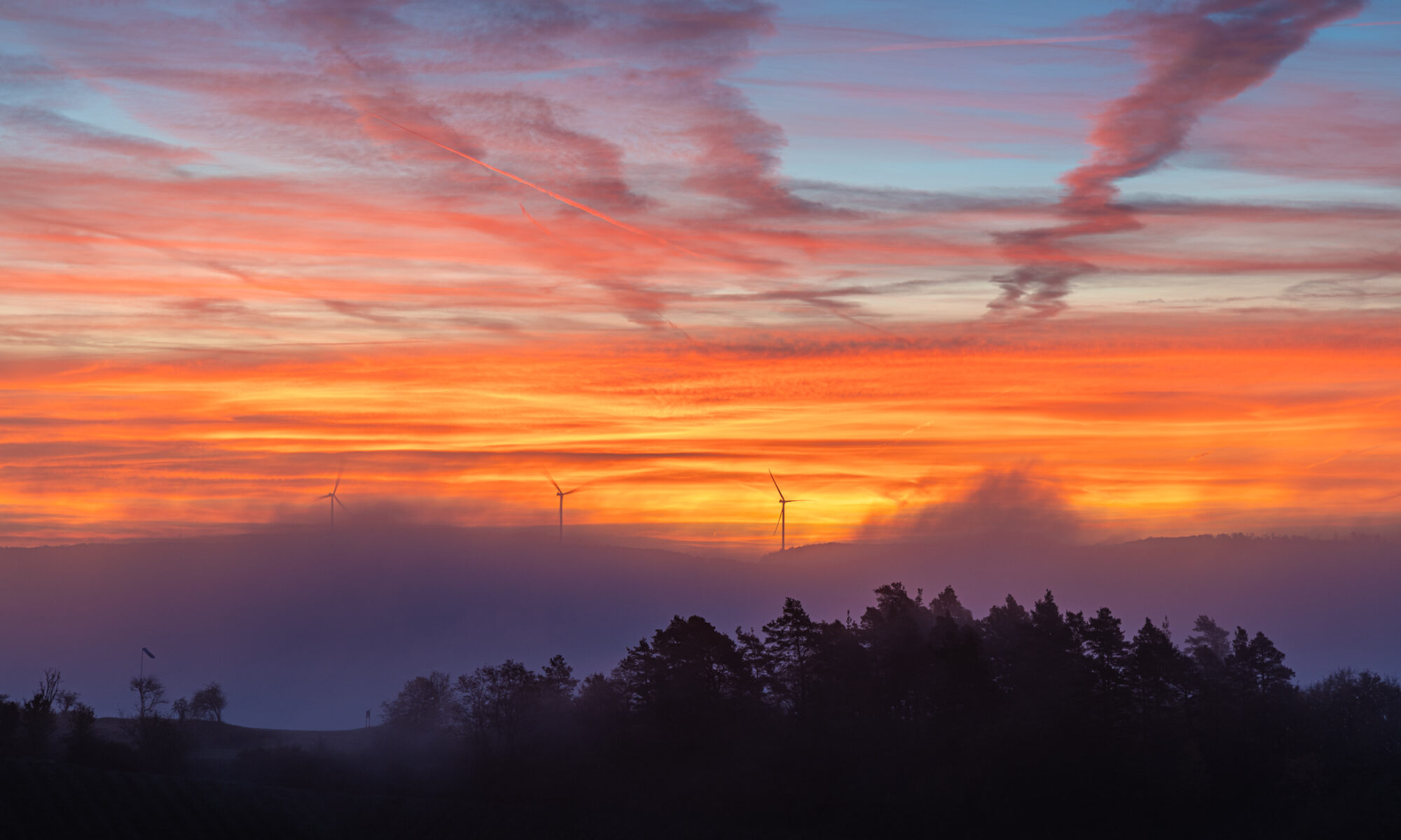 Es war einfach ideal und vor allem war das Morgenrot phasenweise sehr intensiv. Für einige Minuten hatten Weinberge und Wald einen orangen Farbton.