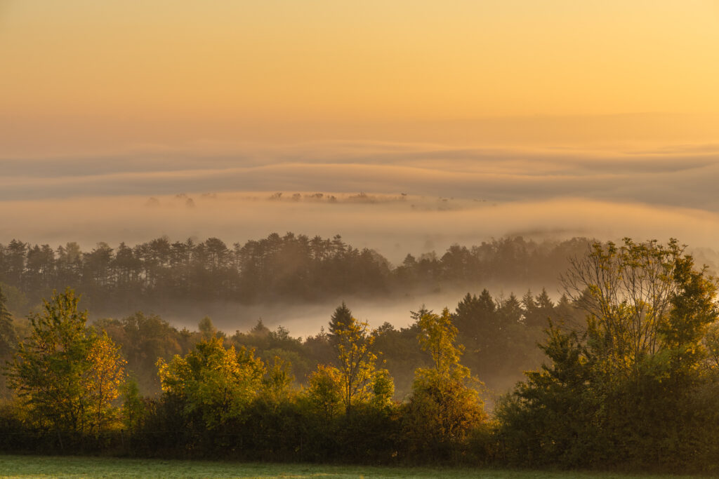 Das Saaletal war wieder einmal äußerst großzügig mit Nebel gefüllt. Erst auf den letzten Metern vor dem Wanderparkplatz bin ich über den Nebel gekommen.