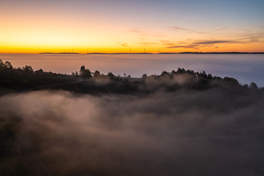 Das Saaletal war wieder einmal äußerst großzügig mit Nebel gefüllt. Erst auf den letzten Metern vor dem Wanderparkplatz bin ich über den Nebel gekommen.